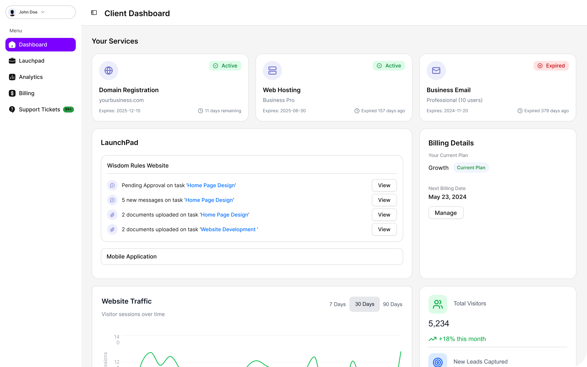 All the services we give you such as website, business email, hosting, updates, etc. are managed through GorillaCore. It’s a simple dashboard where you can see everything in one place.