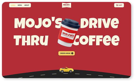 On the header, we added a rotating coffee cup with Mojo’s branding—because why not make it fun?